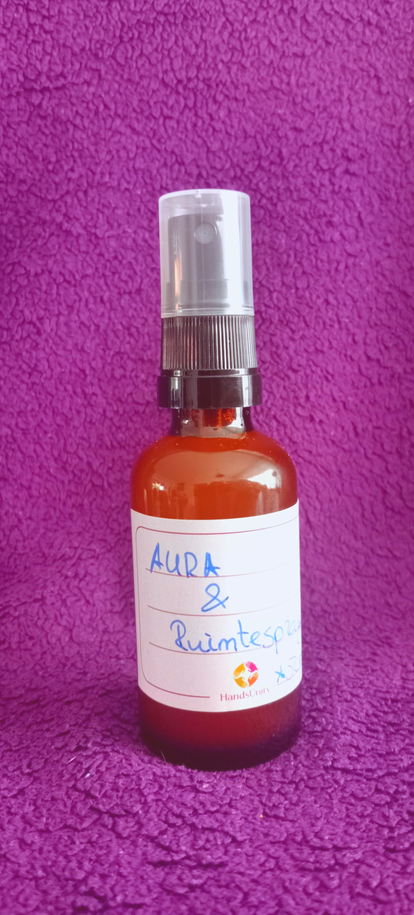 Deze 50ml. in glazen Aura en ruimtespray heb ik zelf gemaakt. Heb 5 edelstenen een paar dagen opgeladen in water bij volle maand en in zonlicht. Verder heb ik florida water erbij tegevoegd. De auraspray is makkelijk in gebruik en een snelle manier om je te omgeven met de energie van de Aura en ruimtespray. Ga staan en sluit je ogen en voel even hoe je je voelt. Spray enkele malen boven je hoofd en laat de nevel over je hoofd neerdalen.Wees je bewust wat er met je gebeurt.